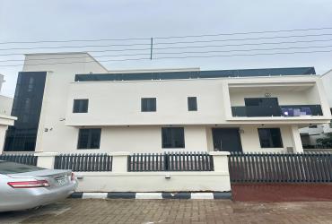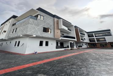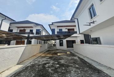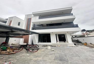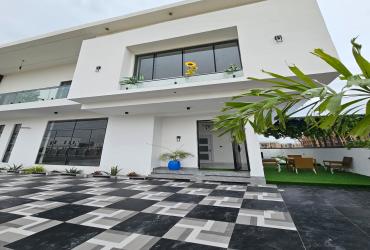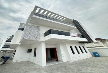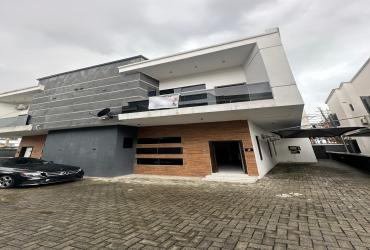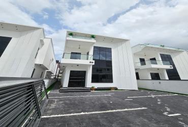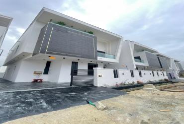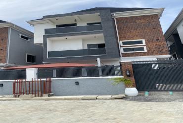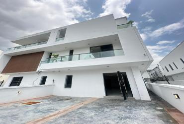Contemporary 5-bedroom Semi-detached duplex with BQ in VGC Lekki. ₦250M. En-suite rooms, fitted kitchen, smart features & secure gated estate.
